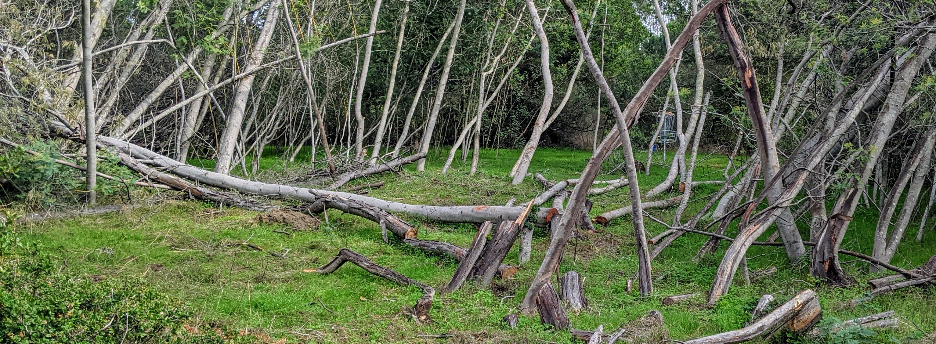 - A large majority of the necessary clearing in complete, as is the chipping of clearing piles